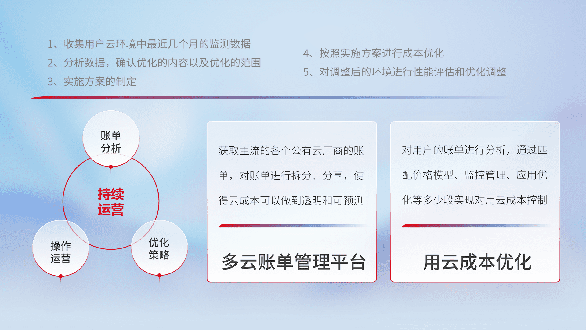 运用智能化工具分析云资源,,,提供日常费用可视化工具,,,,自动账单拆分,,,成本优化云上费用,,,降本增效。。